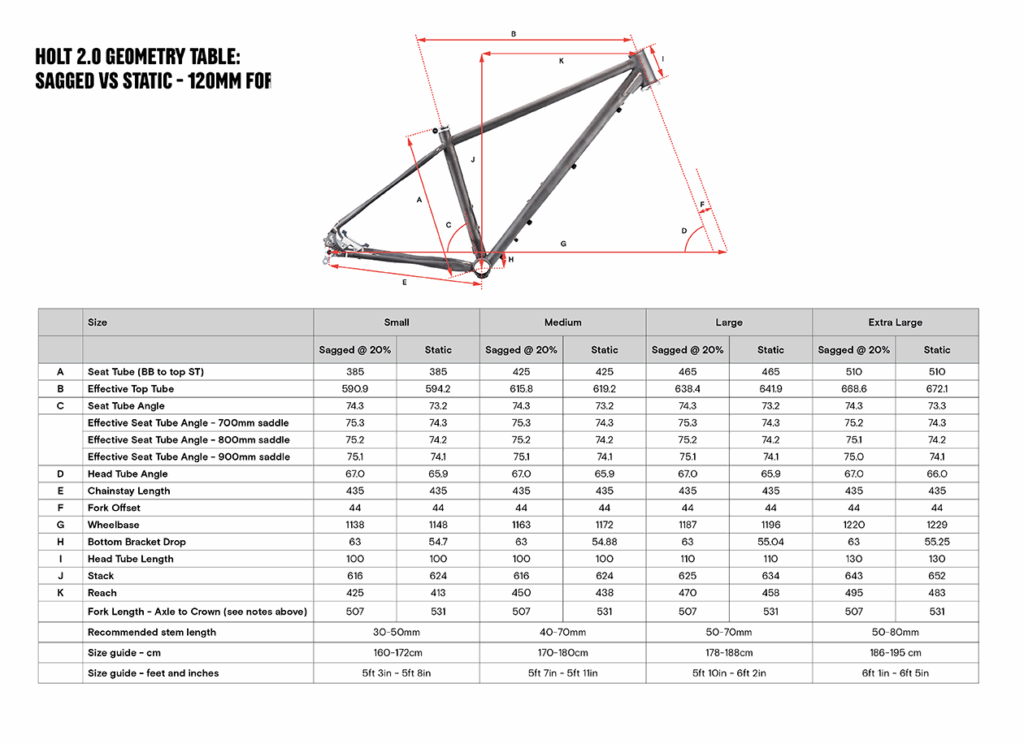 Dimensions taken with 120mm fork - 20% sagged
