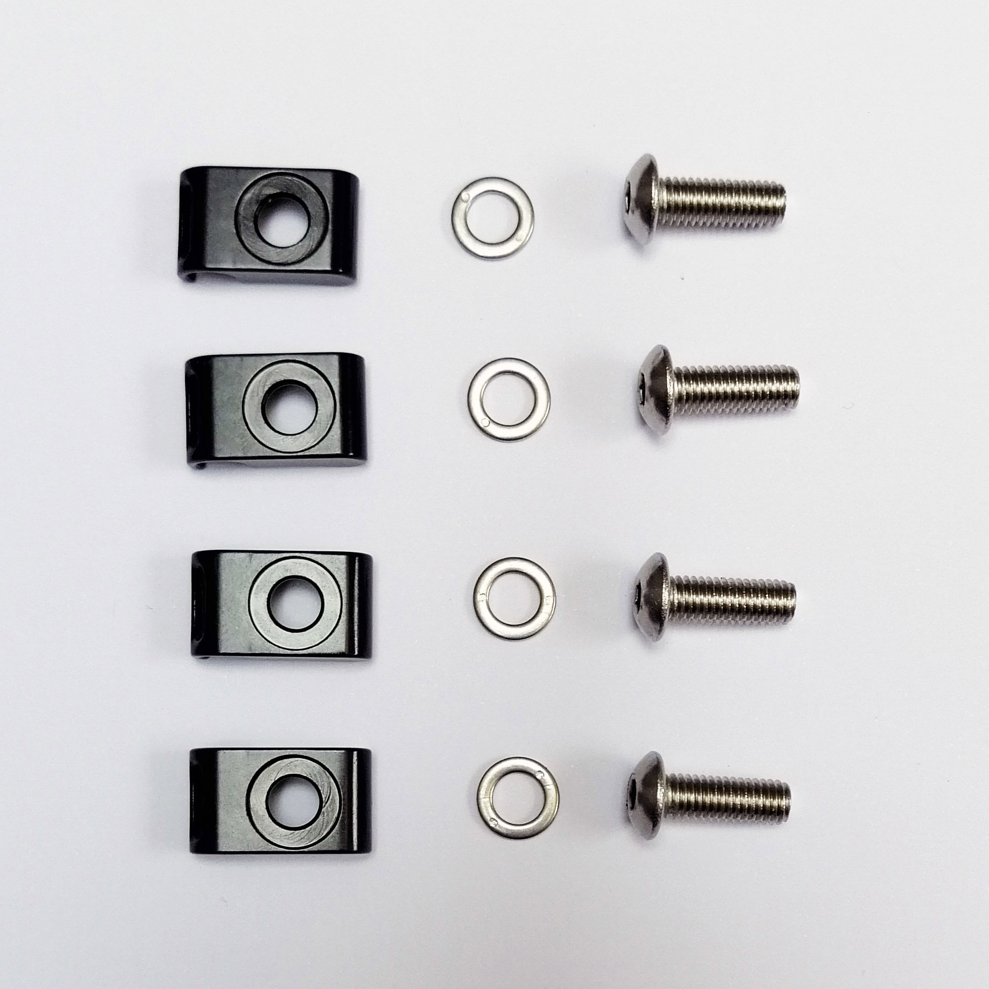 - Kit contains 4 guides, 4 bolts and 4 washers.